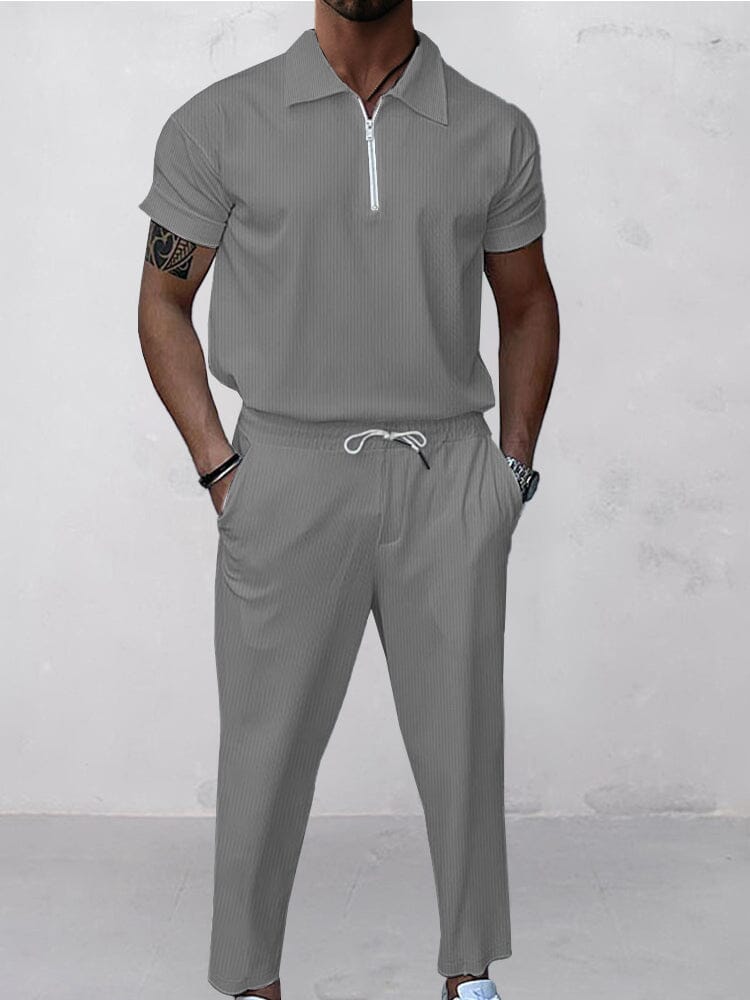 Classic Striped Trim Jacket Pants Set