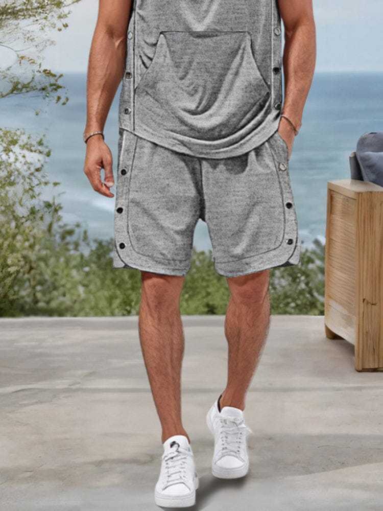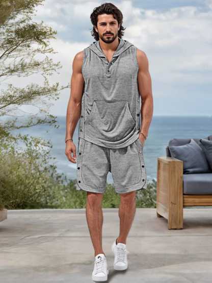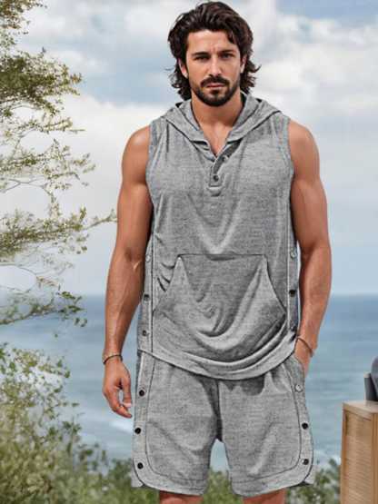 Tank Top Details: Hooded with button closure, sleeveless, kangaroo pocket
