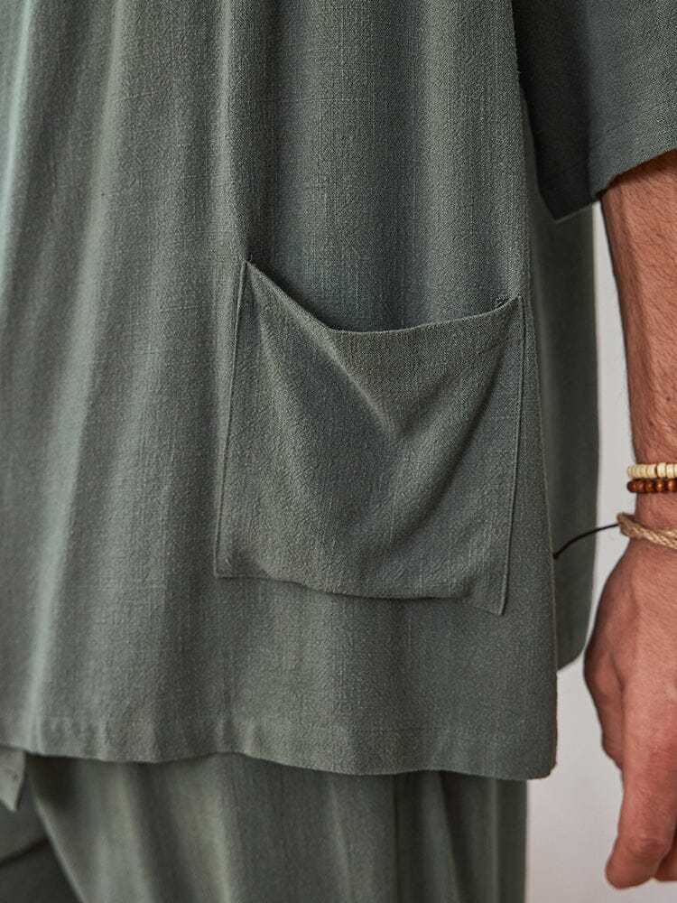 Casual Linen Blend Shirt Set