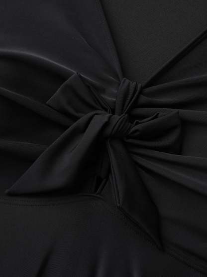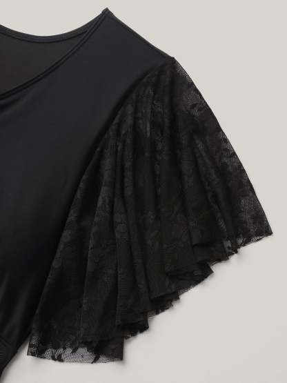Knotted Lace Sheer Sleeve Swim Top