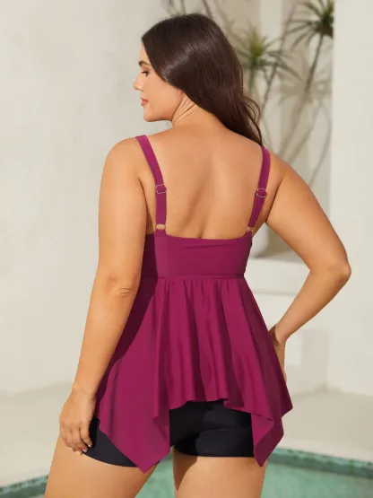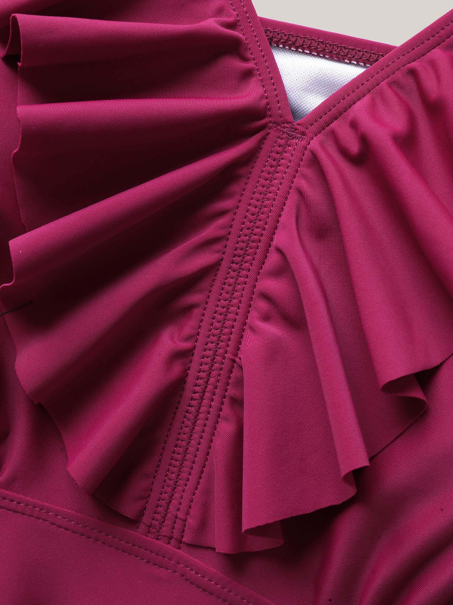 Ruffle Collar Hi-Low Hem Swim Top